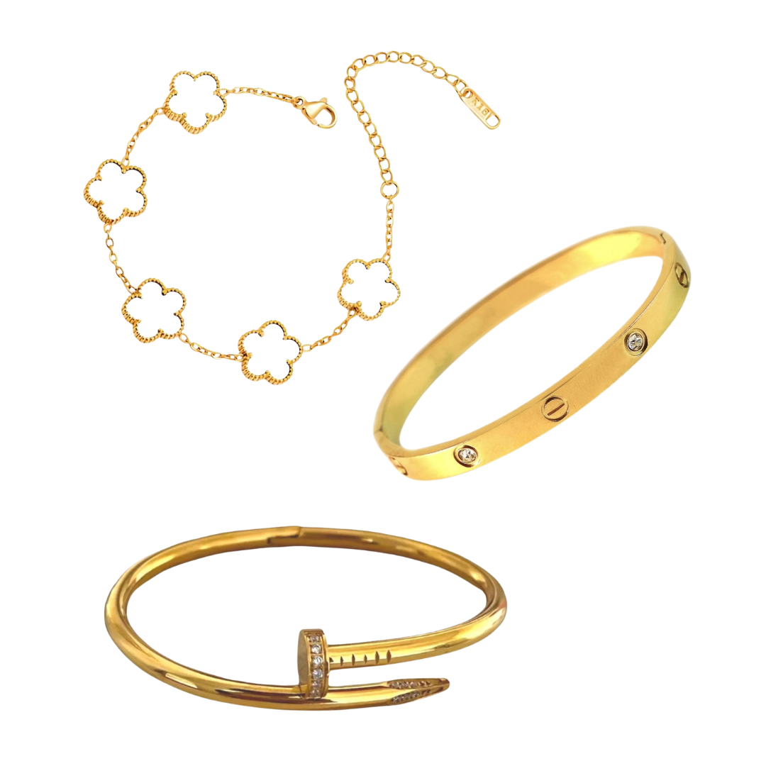 C Love & Nail Bangle With White Clover Bracelet Stack Trio set